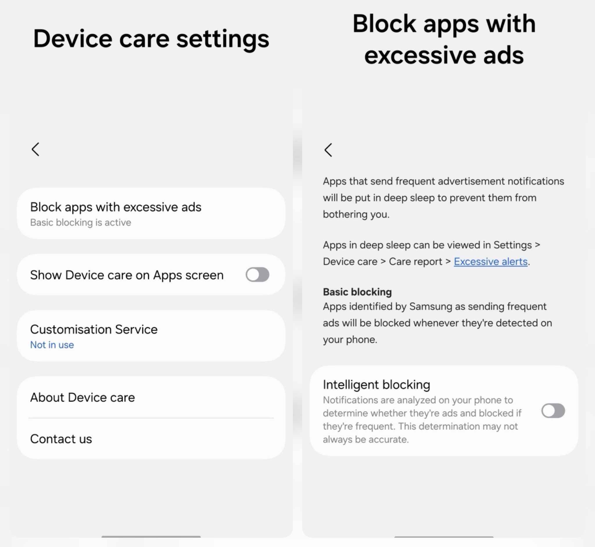 Akıllı engelleme ise cihazınızdaki bildirimleri mahallî olarak tahlil ediyor. Sistem bir bildirimin reklam olduğunu düşünürse ve bu bildirimleri çok sık alıyorsanız engelliyor. Samsung, yeni özelliğin bilhassa alışveriş devirlerinde spam bildirimleri değerli ölçüde azaltacağını söylüyor.