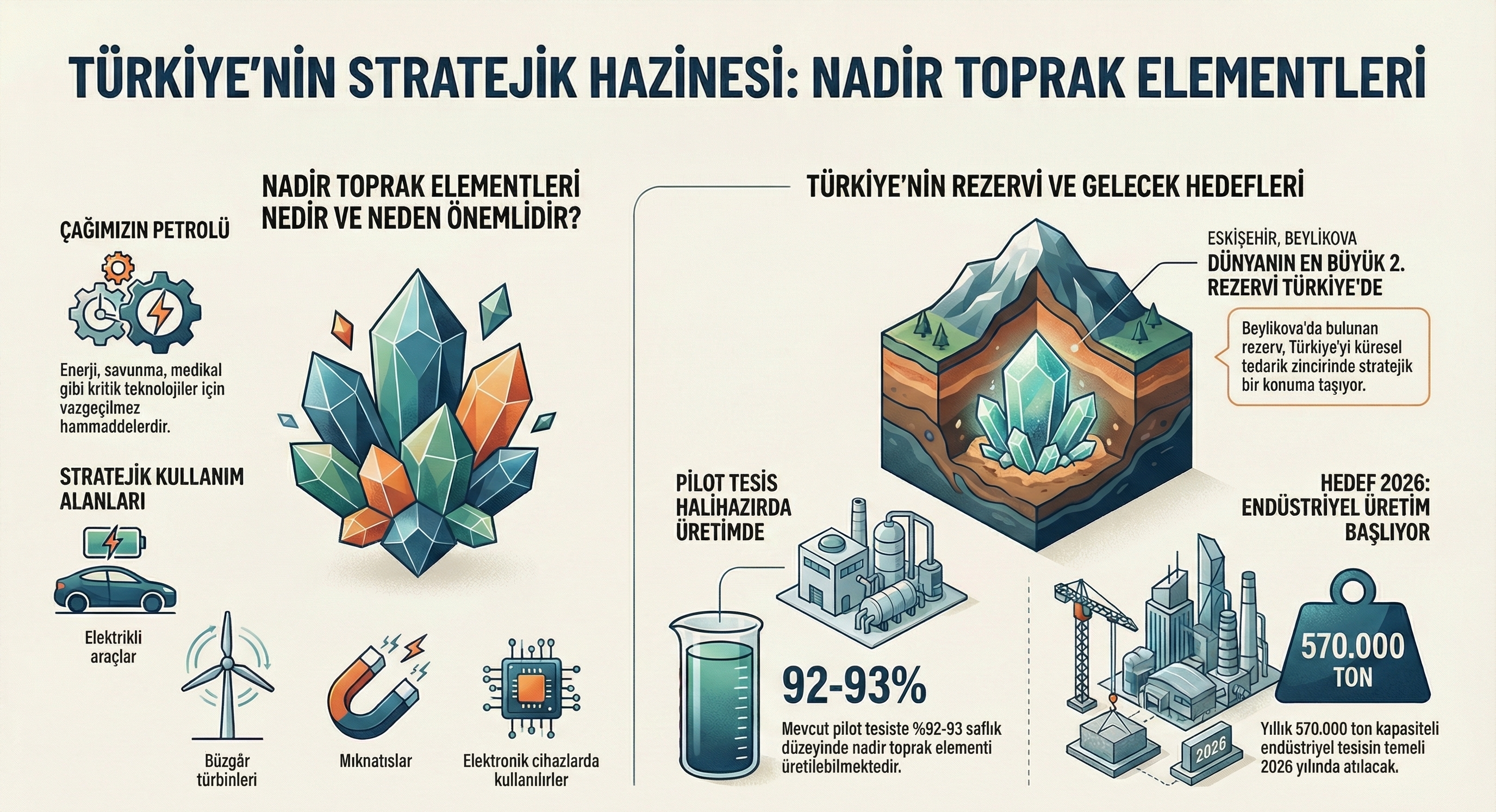 Türkiye, 2026’da atılacak endüstriyel tesis temeliyle birlikte sırf bir maden üreticisi olmayı değil, yüksek teknoloji ham hususu sağlayan global bir tedarikçi olmayı hedefliyor. Bu adım, güç arz güvenliğinden savunma sanayiine kadar birçok alanda stratejik bağımsızlığı güçlendirecek.