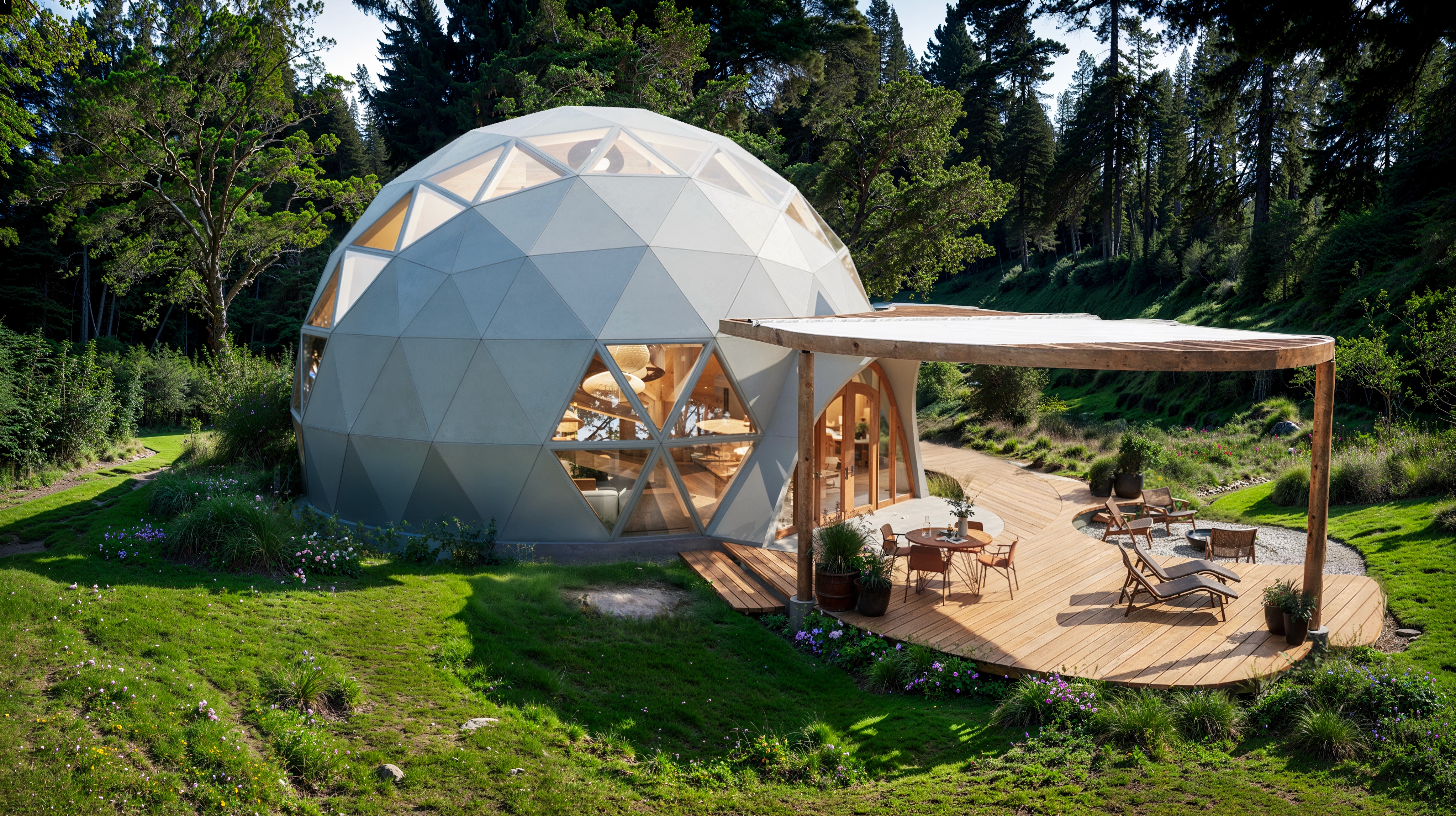 Bundan on yıllar evvel keşfedilen jeodezik mimariyi kalıcı biyoseramik gereçler ile asırlarca ayakta tutmayı planlayan GeoShip teşebbüsü, mesken üretme bölümündeki tüm meselelere tahlil bulduğunu tez ediyor. Evin ana materyali olan biyoseramik; kemiklerimiz ve dişlerimizin kimyasal yapısına çok emsal biçimde, ısıtılmadan birbirine bağlanan magnezyum, kalsiyum ve potasyum fosfattan oluşuyor. Bunun içine selüloz, kenevir yahut bazen de karbon fiber katılarak lifler ek ediliyor. Böylelikle dayanıklılık artarken materyal hafifliyor. Üçgen kalıpla oluşturulan kesimler tabiatta en güçlü yapı olarak bilinen jeodezik kubbe olacak biçimde yalnızca birkaç civata ile birleştirilerek çok güçlü bir yapı oluşturuyorlar. Böcekler tarafından parçalanamayan, küflenmeyen, paslanmayan ve bakteriler tarafından çürütülemeyen biyoseramik tıpkı vakitte betondan 5 kat daha dayanım gücü olduğundan yapının 500 yıl boyunca ayakta kalacağı kestirim ediliyor.