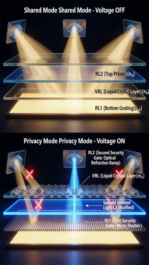 Meşhur sızıntı kaynağı Ice Universe, X platformunda yaptığı bir paylaşımla, Galaxy S26 Ultra’nın Zımnilik Ekranı teknolojisine dair ayrıntılı bilgiler paylaştı. Samsung’un geliştirdiği sistem, OLED panelden çıkan ışığı iki etaplı bir optik güvenlik mekanizmasından geçirerek sırf tam karşıdan bakan kişinin ekranı net görmesini sağlıyor.