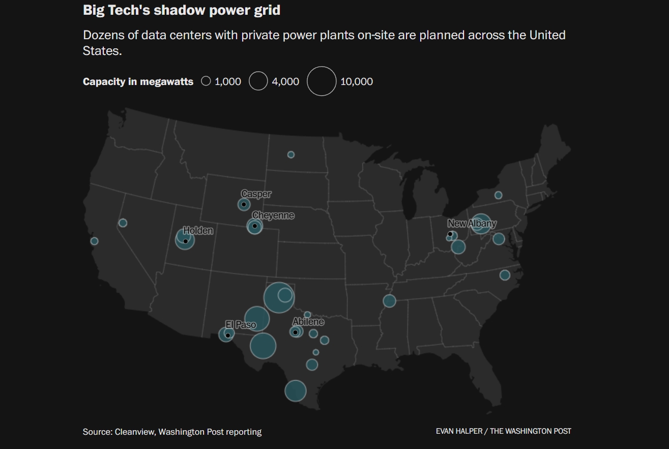 Örneğin, GW Ranch Projesi, Teksas’ın 8.000 dönümlük rüzgarlı toprağına kurulan ve devasa depolama alanlarıyla donatılmış bilgi merkezleri aracılığıyla Chicago’nun tüm elektrik tüketiminden fazla güç harcayacak. Bu çeşit off-grid projeler, Teksas, New Mexico, Pensilvanya, Wyoming, Utah, Ohio ve Tennessee başta olmak üzere birçok eyalette planlanıyor. Yalnızca onaylanmış projeler, New York City’nin yıllık güç gereksinimini birkaç kere karşılayacak kapasitede. Kimi eyaletler, off-grid data merkezlerini teşvik etmek için güç santrali kurulumunu kolaylaştıran yasalar çıkardı. Lakin raporlara nazaran şirketlerin büyük bir kısmı yenilenebilir yahut başka pak güç tipleri yerine ekseriyetle gaz santrallerine yöneliyor. Bu da emisyon kaygılarını tırmandırıyor.